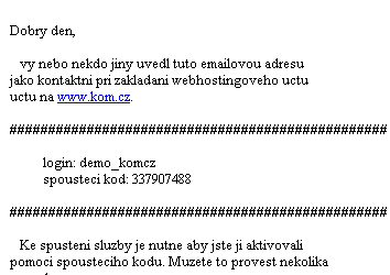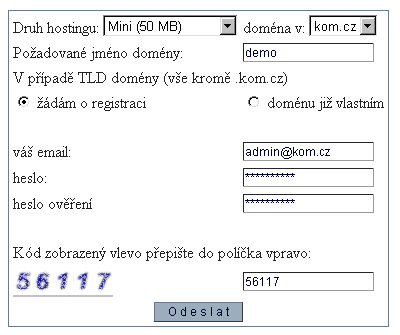 použili při objednání demo účtu. Chtěli jsme aby běžel na adrese demo.kom.cz, proto jsme v kolonce