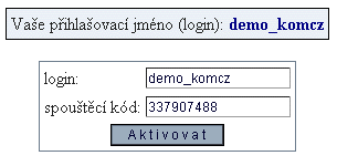 demo_komcz. Mimochodem jedná se o velmi špatnou ukázku volby hesla. Takové heslo je totiž snadno uhodnutelné. Ale u demo účtu to nevadí.